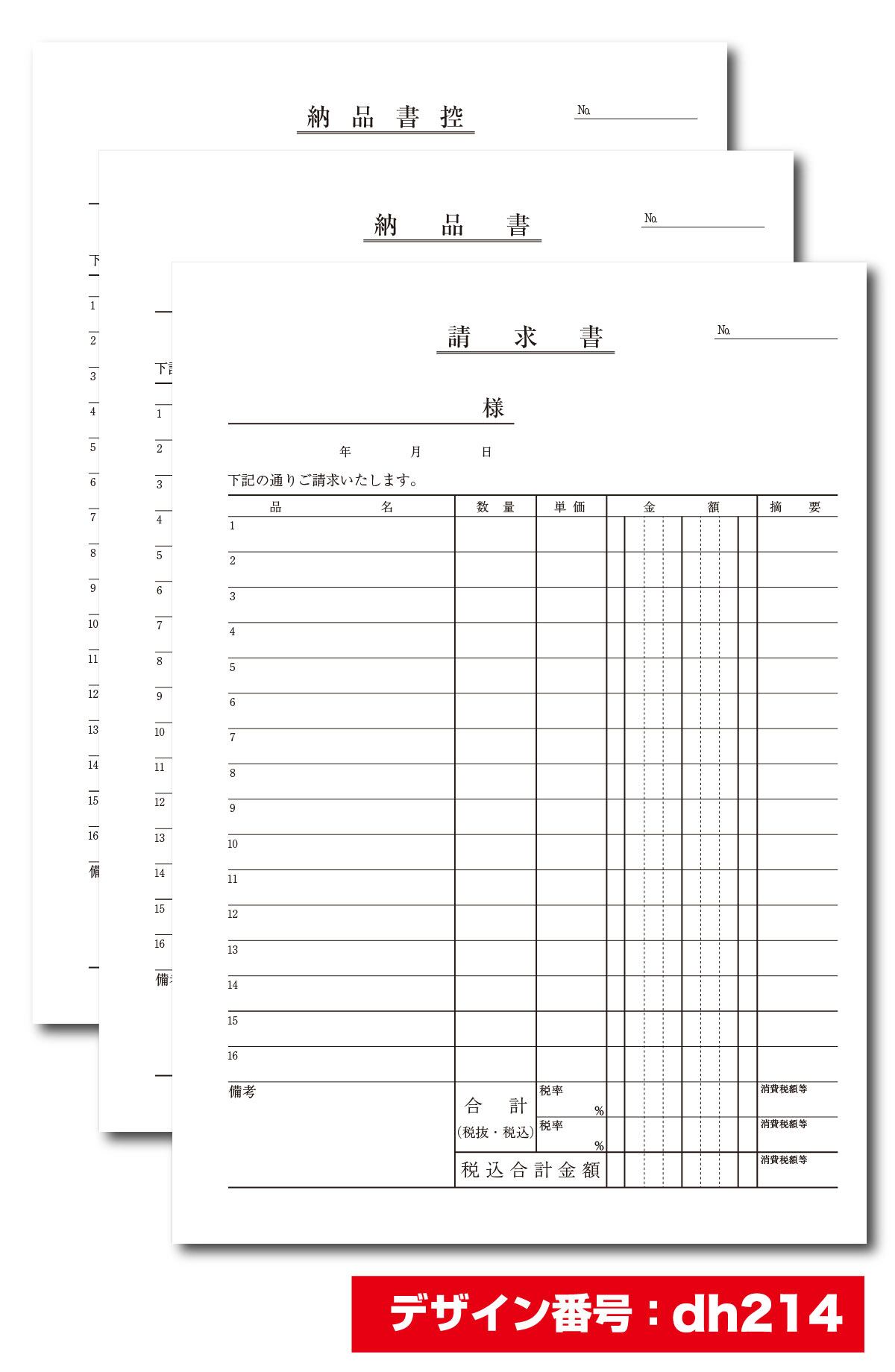名入れ納品書(請求書付き) 10冊セット A5サイズ 3枚複写×50組 dh214